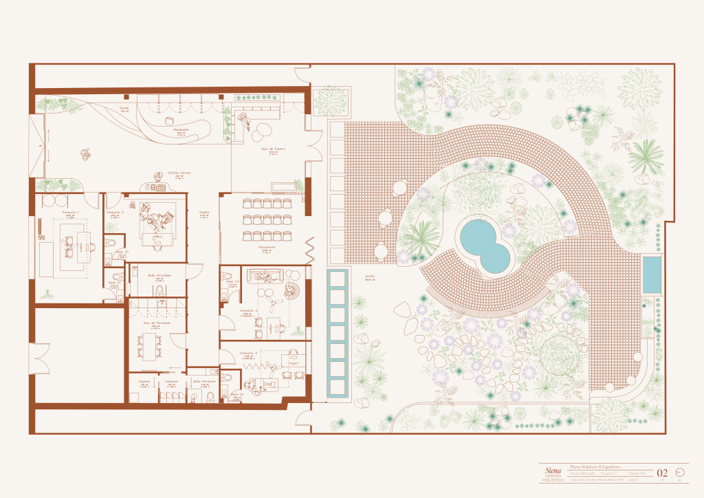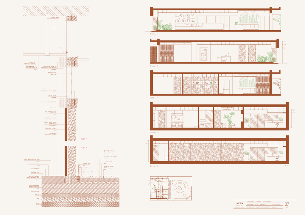 Siena es un centro de salud integrativa en Palma que transforma un local de nueva construcción en un espacio dedicado al bienestar holístico. El proyecto se inspira en los paisajes desérticos y mediterráneos, reinterpretados a través de tonos terracota, materiales naturales y una cuidada gestión de la luz. La distribución organiza áreas para terapias individuales, actividades grupales, una tienda de productos naturales y un jardín concebido como oasis exterior. Cada decisión de diseño busca generar calma, equilibrio y una experiencia sensorial que conecta cuerpo, mente y entorno.